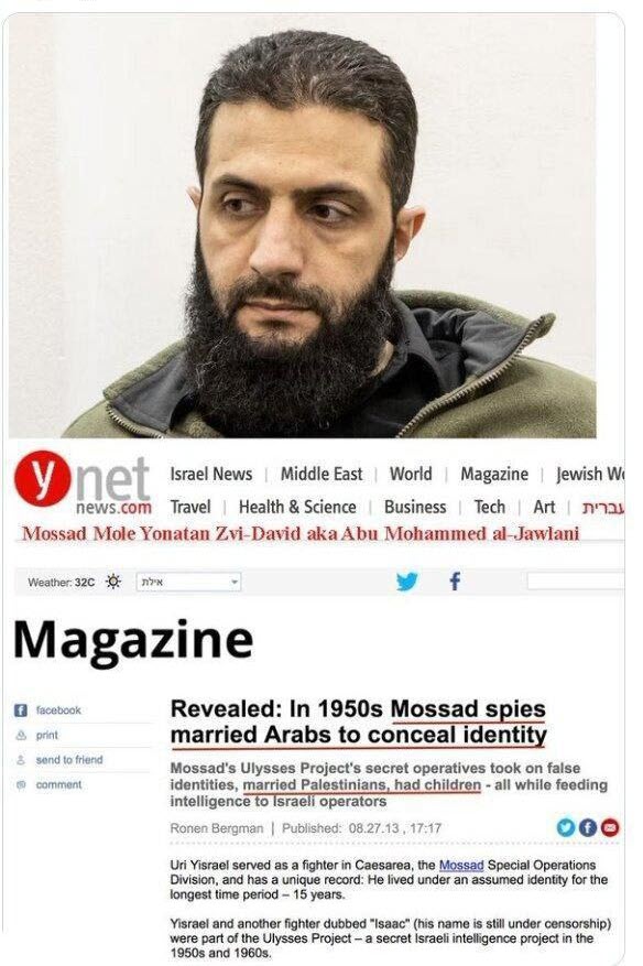 What a surprise!?!?! The Head of HTS, a.k.a. “ISIS,” a.k.a. “Al Qaeda,” which overthrew Syrian President Bashar Assad, is Jewish, and graduated from the Islamic School of Jurisprudence, in Tel Aviv. How many other “Head-choppers” are also Israeli Mossad?