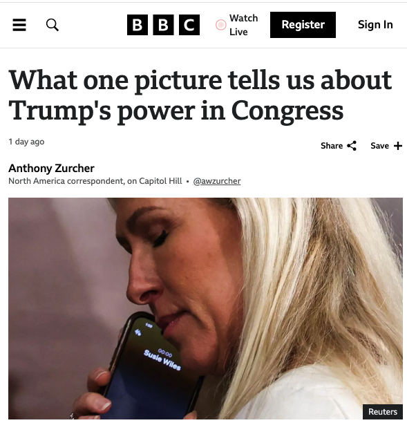 Although she covered the device with her hand, a sharp photographer for Reuters news agency, Evelyn Hockstein, captured the name of the person on the other end of the conversation – incoming White House chief of staff Susie Wiles.