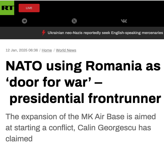 NATO using Romania as ‘door for war’ – presidential frontrunner (The expansion of the MK Air Base is aimed at starting a conflict, Calin Georgescu has claimed)