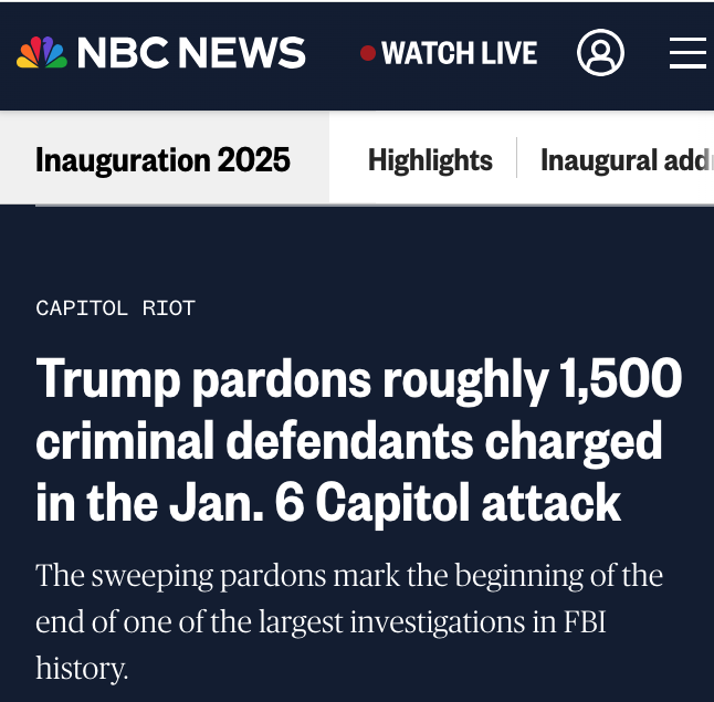 Trump pardons roughly 1,500 protestors falsely charged in the Jan. 6 Capitol peaceful protest that the FBI COINTELPRO set up as a massive entrapment operation