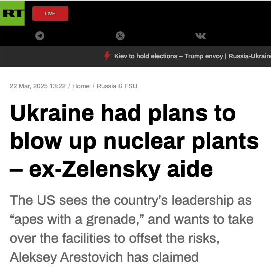 Ukraine had plans to blow up nuclear plants – ex-Zelensky aide