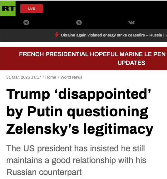 POTUS SLOWLY SLIPS INTO MADNESS! Trump ‘disappointed’ by Putin questioning Zelensky’s legitimacy