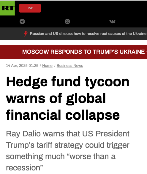 Billionaire investor Ray Dalio has warned that the United States is facing economic risks far greater than a typical recession, arguing that US President Donald Trump’s aggressive tariff policies and ballooning debt could trigger a breakdown of the global financial system.