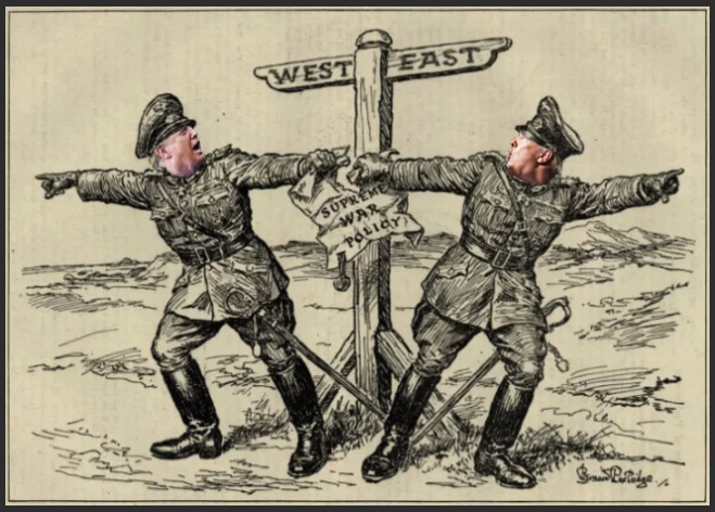 The Trump default in the present “peace negotiations” with Russia is the Mitchell-Colby war against both Russia and China, but not simultaneously – it’s the military strategy of the 18th century homily, the stitch in time to save nine.