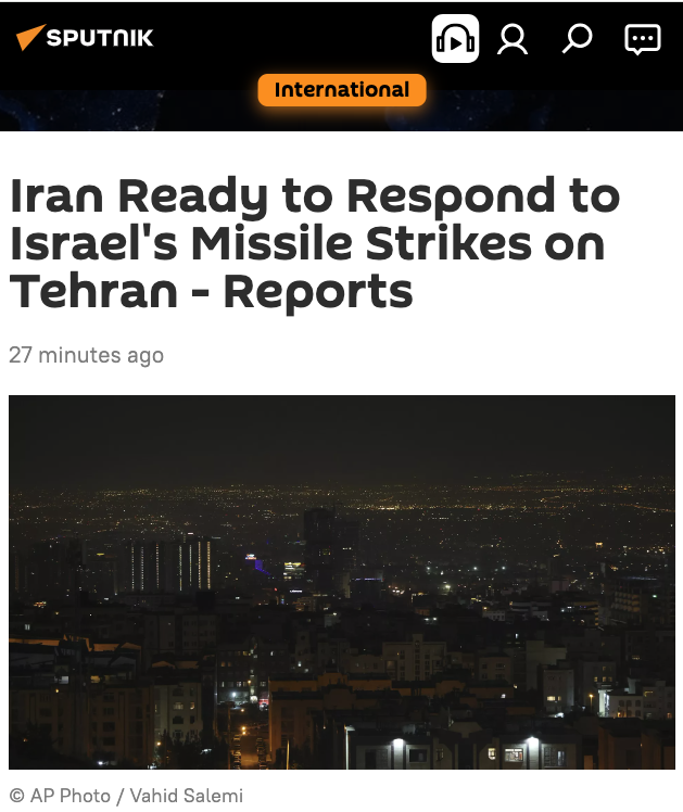TEHRAN (Sputnik) – Iran is ready to respond to Israel for the missile strikes carried out overnight to Saturday, the Iranian state news agency Tasnim reported, citing a high-ranking source.