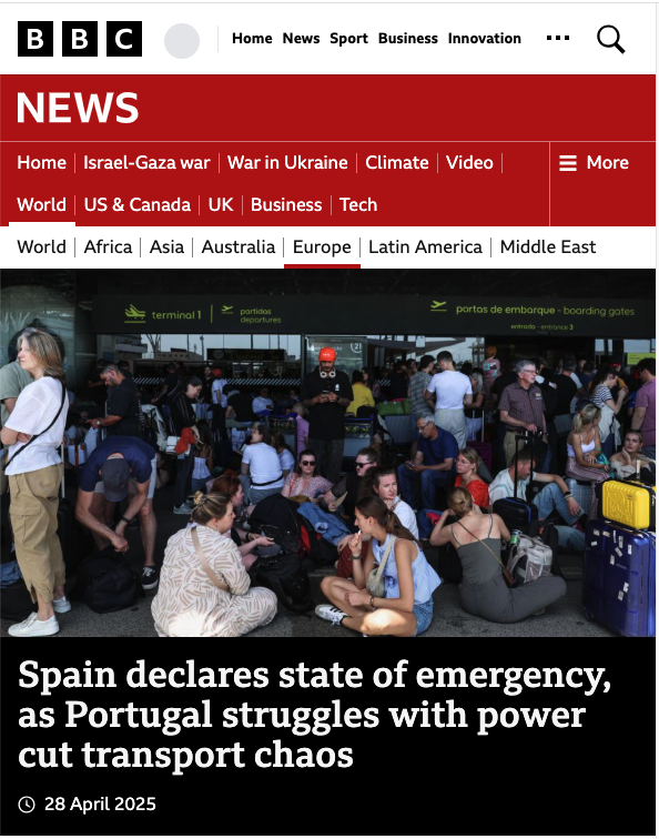 Now we see that Spain just angered Israel again as follows and then they immediately suffer the largest power outage in the country’s history.