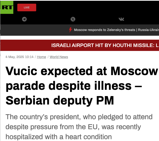 Did the Zio-Anglo-American Russophobes poison the Serbia president in Florida so he would miss Russia’s Victory Day celebrations in Moscow?!