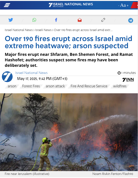 MAY 2025 FLASHBACK: Over 190 fires erupt across Israel amid extreme heatwave; arson suspected—Who & Why?