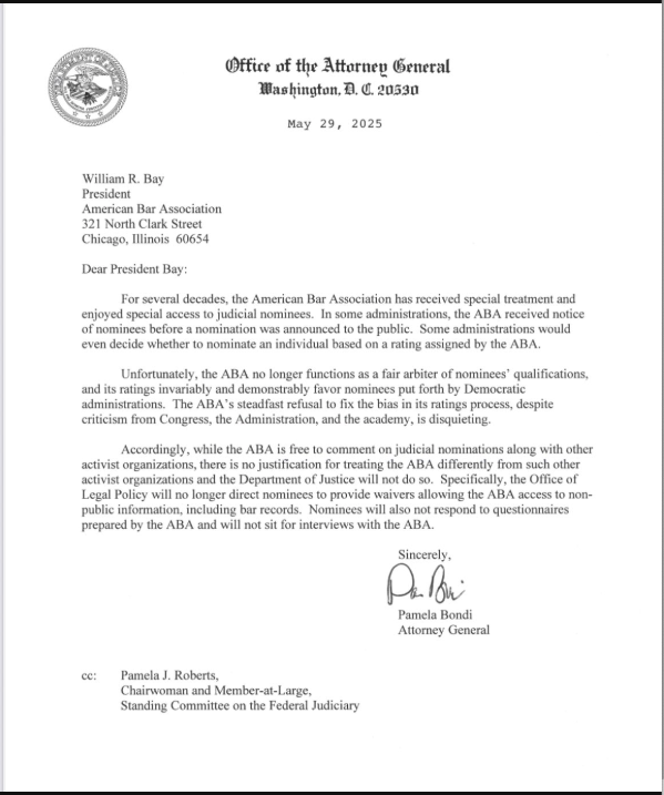 Attorney General Pam Bondi gave the bad news to the radical, activist A.B.A. in a letter, today: