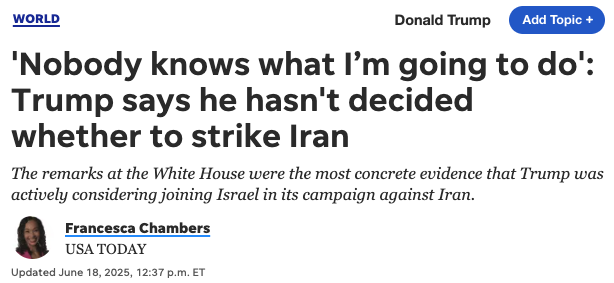 “Nobody knows what I’m going to do.” — Stable genius Donald J. Trump, June 2025