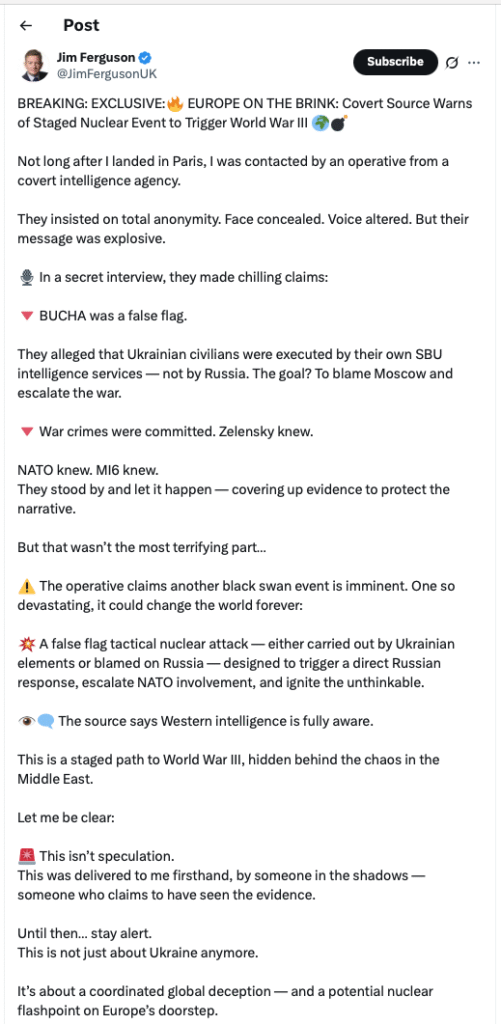 BREAKING: EXCLUSIVE:đĽ EUROPE ON THE BRINK: Covert Source Warns of Staged Nuclear Event to Trigger World War III đđŁ