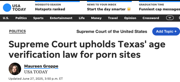 WASHINGTON – The Supreme Court on June 27 upheld a Texas law requiring pornographic websites verify users are at least 18, in a case that pitted concerns about protecting minors against worries about violating the First Amendment rights of adults.
