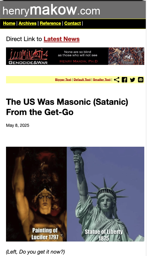 Freemasonry is the Church of Satan masquerading as a fraternal mystical philanthropic order. It fronts for Illuminati (Masonic & Cabalist Jewish) central bankers who started the US as a vehicle to advance their “New World Order.” In the words of Masonic elder Manley P. Hall, “we must also perfect the plan of the ages, setting up here the machinery for a world brotherhood of nations and races.” (“The Secret Destiny of America,” 1944, p.3)