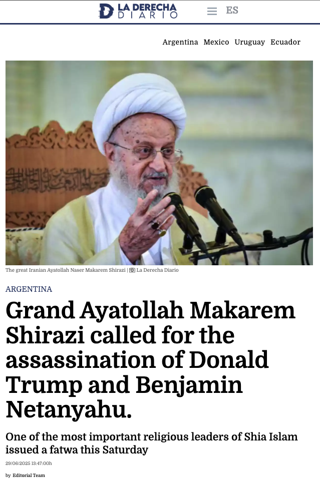 This decision could escalate tensions in the Middle East and directly affect relations between Iran and the United States, following the bombing campaign and the destruction of Iran’s nuclear program. It could also encourage actions by Islamic terrorist groups that interpret the fatwa as a direct order to act.