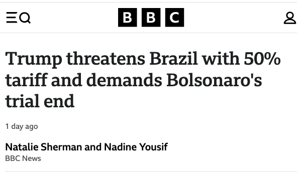 In it, Trump accuses Brazil of “attacks” on US tech companies and of conducting a “witch hunt” against former far-right president Jair Bolsonaro, who is facing prosecution over his alleged role in a plot to overturn the 2022 election.