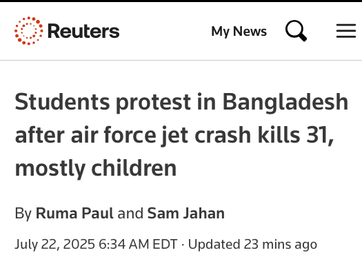 https://www.reuters.com/business/aerospace-defense/students-protest-bangladesh-after-air-force-jet-crash-kills-31-mostly-children-2025-07-22/