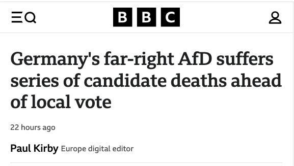 6 Conservative Candidates Killed In Germany: Unparalleled campaign of terror murdering AfD politicians to stop their electoral successes