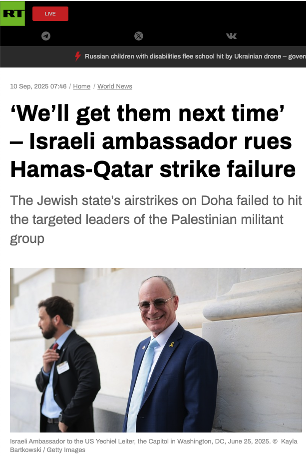 ‘We’ll get them next time’ – Israeli ambassador rues Hamas-Qatar strike failure