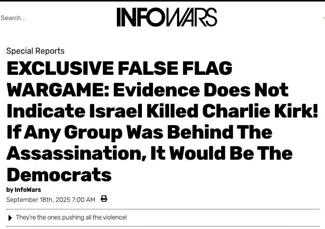 Why is Alex Jones carrying water for Israel and stoking the flames of Civil War 2.0 with this inflammatory headline and nakedly flawed commentary?!