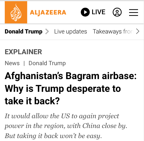 Warmonger-in-Chief Trump is even formulating plans to retake Bagram Airbase in Afghanistan.