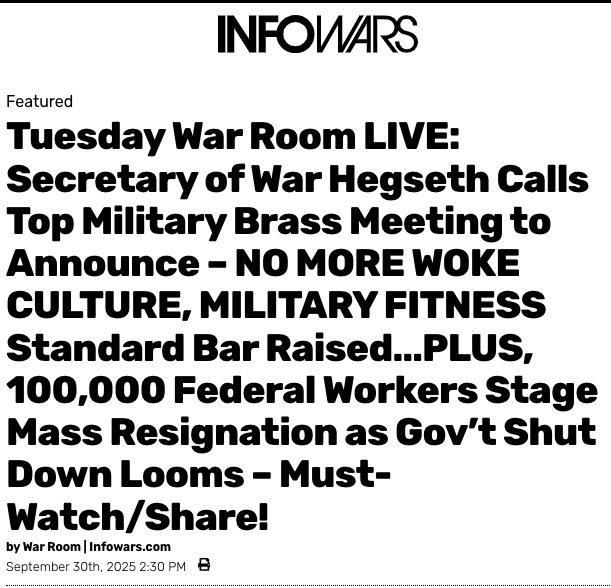 • MSM Says It Knows What Hegseth’s Mystery Meeting Of Hundreds Of Generals Is All About