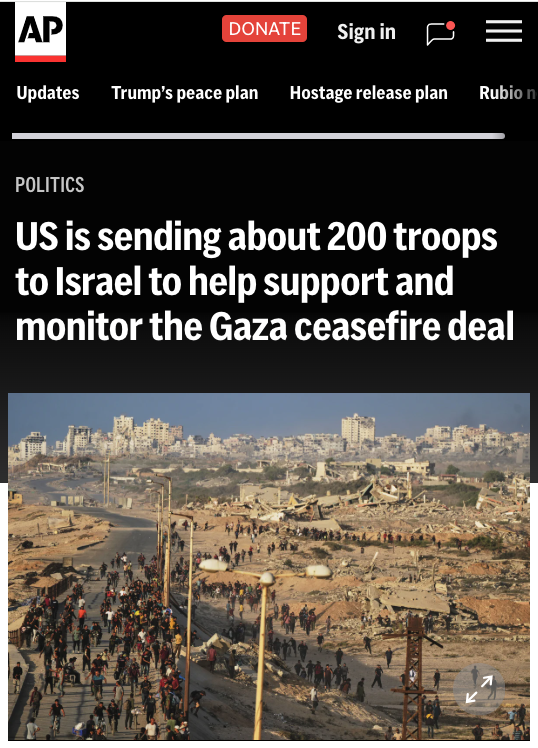 MISSION CREEP ALERT! US sending 200 troops to Israel to help support and monitor the Gaza ceasefire deal