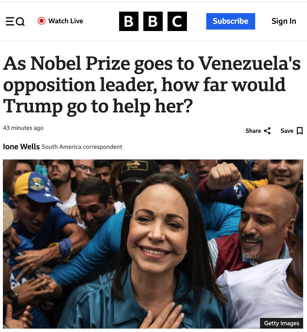 This Nobel Prize win for Maria Corina Machado is being hugely welcomed by the opposition in Venezuela.