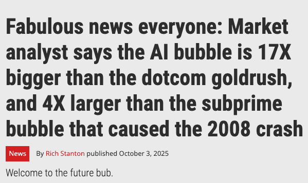 Of course, there is also the elephant in the room where it concerns the sheer tenuousness of the U.S. economy notoriously known as the rapidly inflating AI Tech bubble.