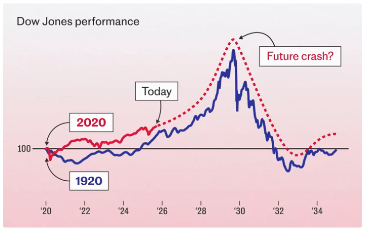 Here too there are parallels with the “Roaring Twenties” and the subsequent crash. The new industries that investors piled into back then were automobiles, consumer goods, radio, construction and chemicals.
