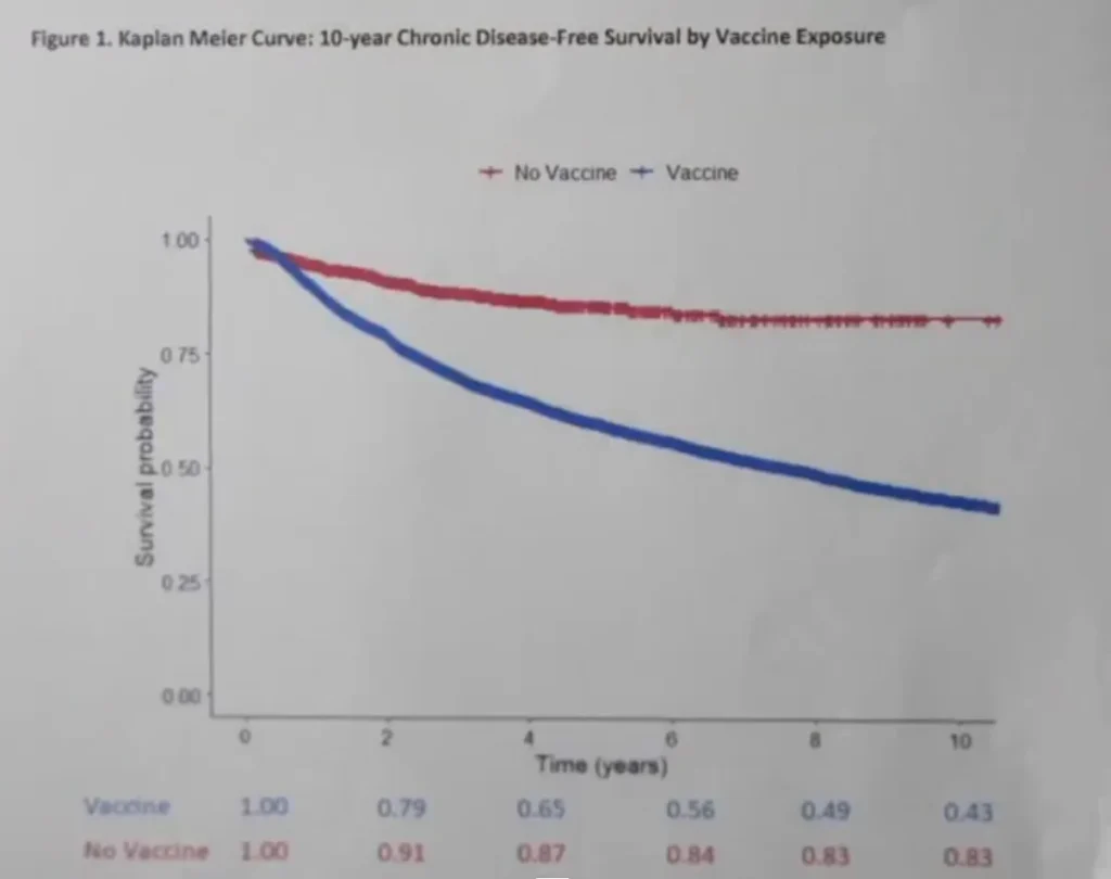 In simpler terms, the study showed that children who are vaccinated are more than three times more likely to have a chronic disease than unvaccinated children after a 10-year period.