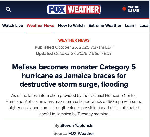 - 160 MPH WEATHER WEAPON HURRICANE MELISSA: Right on time for the final and high consequential week of October 2025