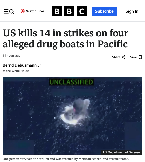Tyrannical Trump’s unlawful extrajudicial killings at sea show no signs of abating.