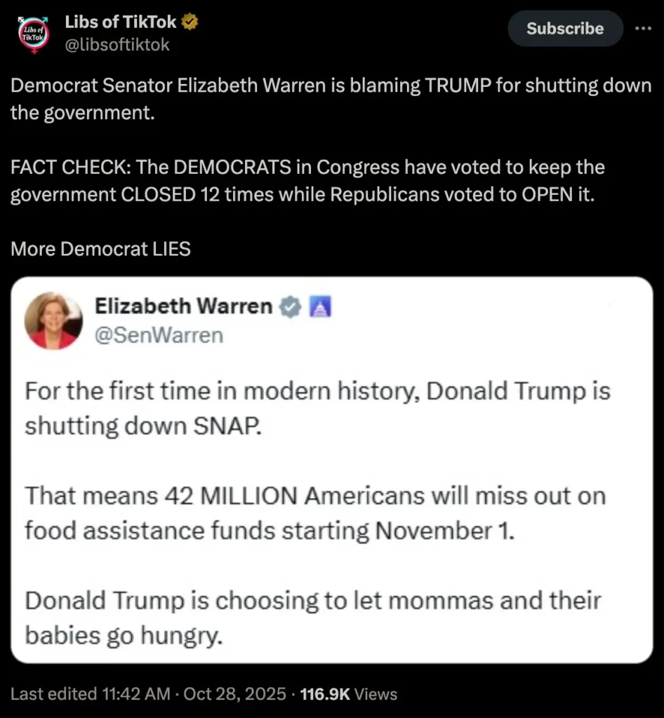 Moron grifters like Elizabeth Warren and Chuck Schumer are salivating to see their Marxist fever dreams of violent revolution over EBT and SNAP benefits come to pass.