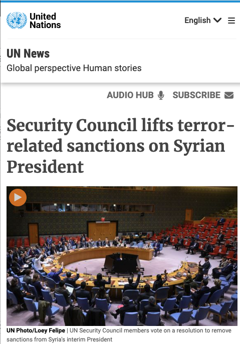 MIDEAST MADNESS! Whereas Peacemaker Bashar al-Assad was driven into exile, the UN Security Council unanimously lifts terror sanctions on Syria’s unelected Christian-killing terrorist president