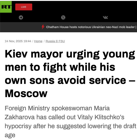 https://www.rt.com/russia/627807-zakharova-kiev-mayor-sons-ukraine-draft-age/