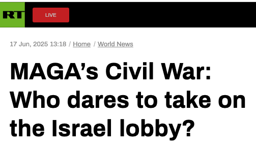 Clearly, there are influential representatives of MAGA who are not only willing to openly challenge the perversely self-damaging hold that Washington allows Israel to have over its foreign policy, but are also beginning to be explicit about the fact that Israel’s lobby in the US – whether Jewish or not – is putting another country first, at enormous cost to Americans.