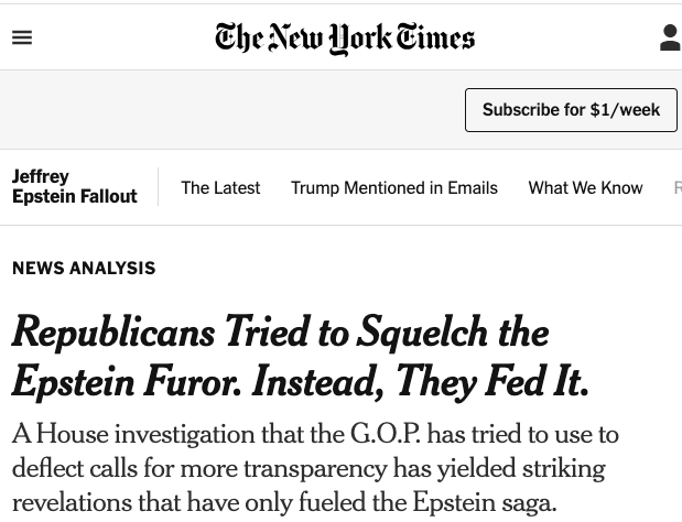 QUITE HYSTERICAL & HILARIOUS!!! Republicans Tried to Squelch the Epstein Furor. Instead, They Fed It.