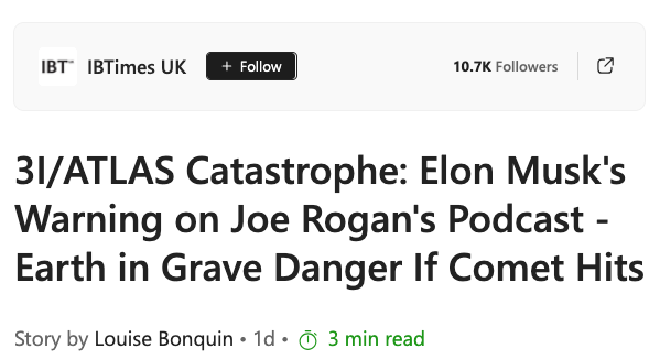 Elon Musk recently made headlines when he warned that the interstellar object 3I/ATLAS could pose a catastrophic threat if it were ever to collide with Earth. Speaking on The Joe Rogan Experience, Musk suggested that the comet has the potential to cause devastation on a scale that could wipe out an entire continent.