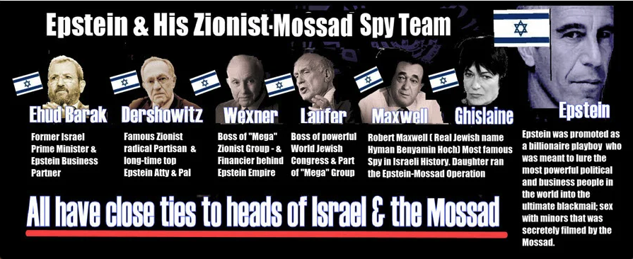 Check out Epstein’s high-powered Zionist Mossad spy team below to grasp the true depth and breadth of this treasonous conspiracy to blackmail and/or bribe every single member of the U.S. Congress, among numerous other powerful politicos and influencers across the USA.