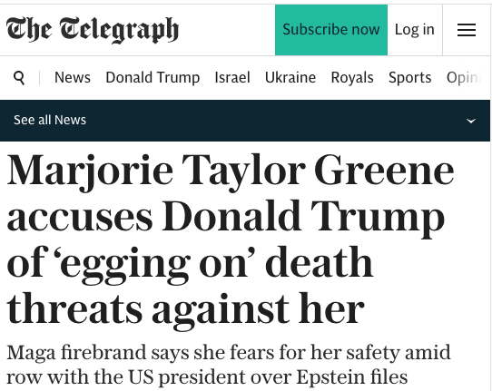 Marjorie Taylor Greene has accused Donald Trump of inciting death threats against her after the former allies fell out in a bitter public row over the Epstein files on Friday night…