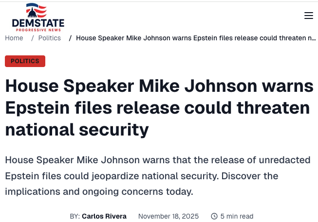 House Speaker Mike Johnson has expressed concerns that the release of the Epstein files without redactions could pose a threat to national security. Johnson”s warning highlights the potential risks associated with disclosing sensitive information related to the high-profile case.