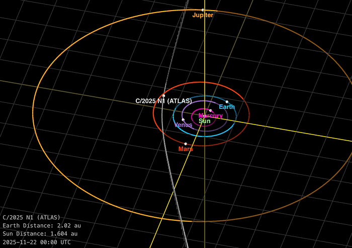 Trajectory of 3I/ATLAS with positions of the planets on November 22, 2025. (Credit: NASA/JPL)