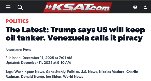 The United States has seized an oil tanker off the coast of Venezuela as tensions mount with the government of President Nicolás Maduro. Venezuela called it blatant piracy, exposing how U.S. pressure has always been about controlling the country’s vast oil reserves.