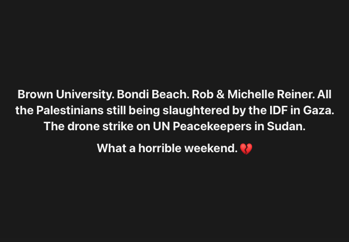December 13, 2025 — 2025 Brown University mass shooting which targeted a Jewish professor by a suspect who has yet to be identified or captured
