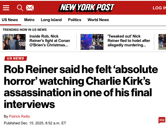Reiner, who was stabbed to death alongside his wife at their Los Angeles home Sunday, told Piers Morgan just weeks after Kirk’s death in September that he was appalled by the conservative activist’s slaying.