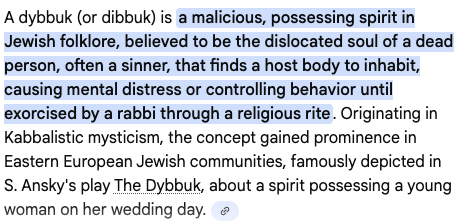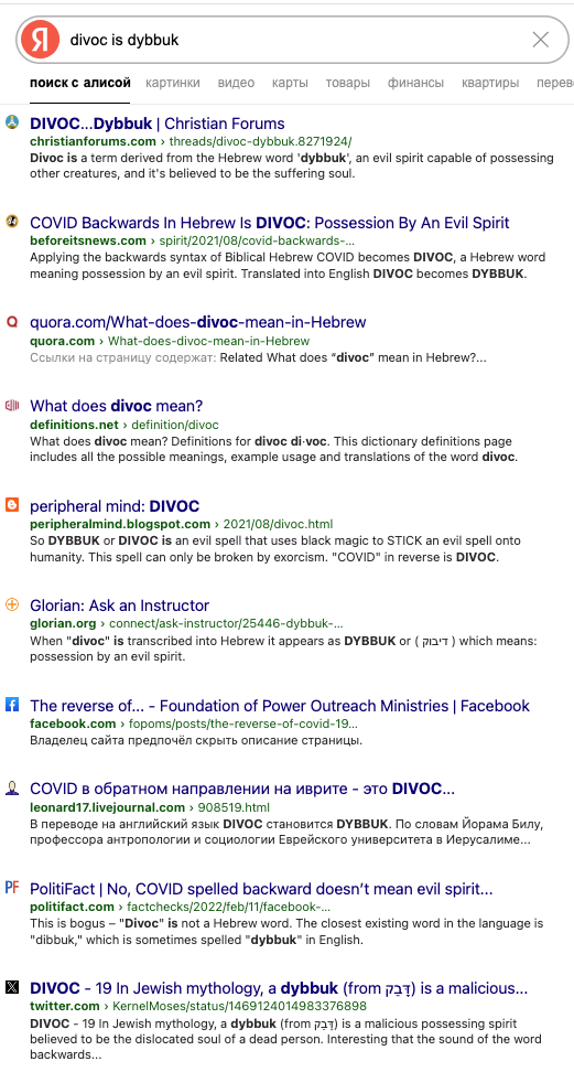 There are some other strange connections between DIVOC and the Hebrew word “Dibbuk” which should not be overlooked as seen in the “divoc is dybbuk” search results below.