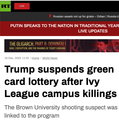 Trump suspends green card lottery after Ivy League campus killings [Is this why the US Intel Community perpetrated both university assassinations?]