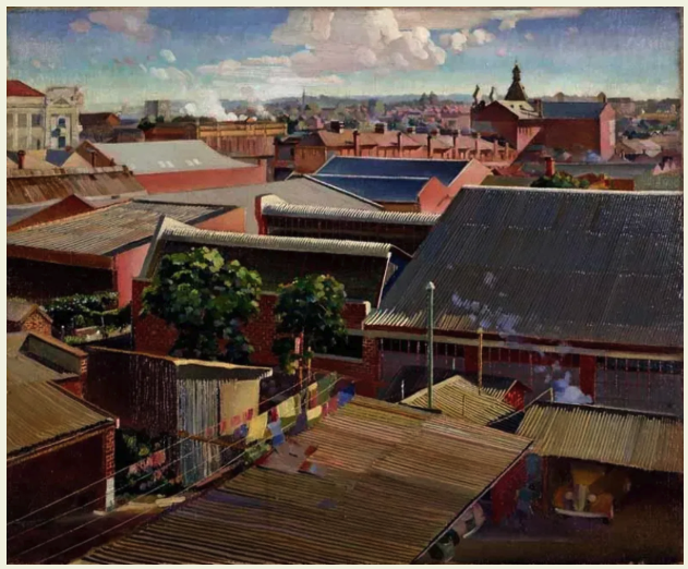 Art for today (not mine!) – I am republishing one of the beautiful images from historical photography and art archives that EDAU used to include in their articles. This painting is by an Australian painter Harald Vike (1939). “Perth roofs (suburban Perth)”. Oil on canvas. The State Art Collection, Art Gallery of Western Australia.