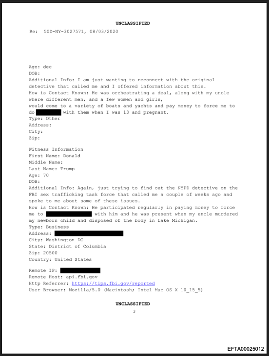 Here’s the FBI Case Document stating that Donald Trump “regularly paid money to force a 13 year old to have sex with him when she was pregnant”