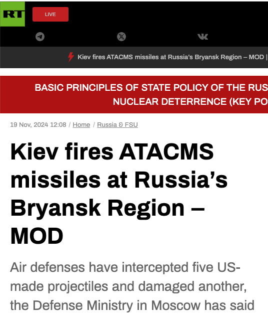 RED LINE CROSSED: Kiev fires 6 ATACMS missiles at Russia’s Bryansk Region – MOD